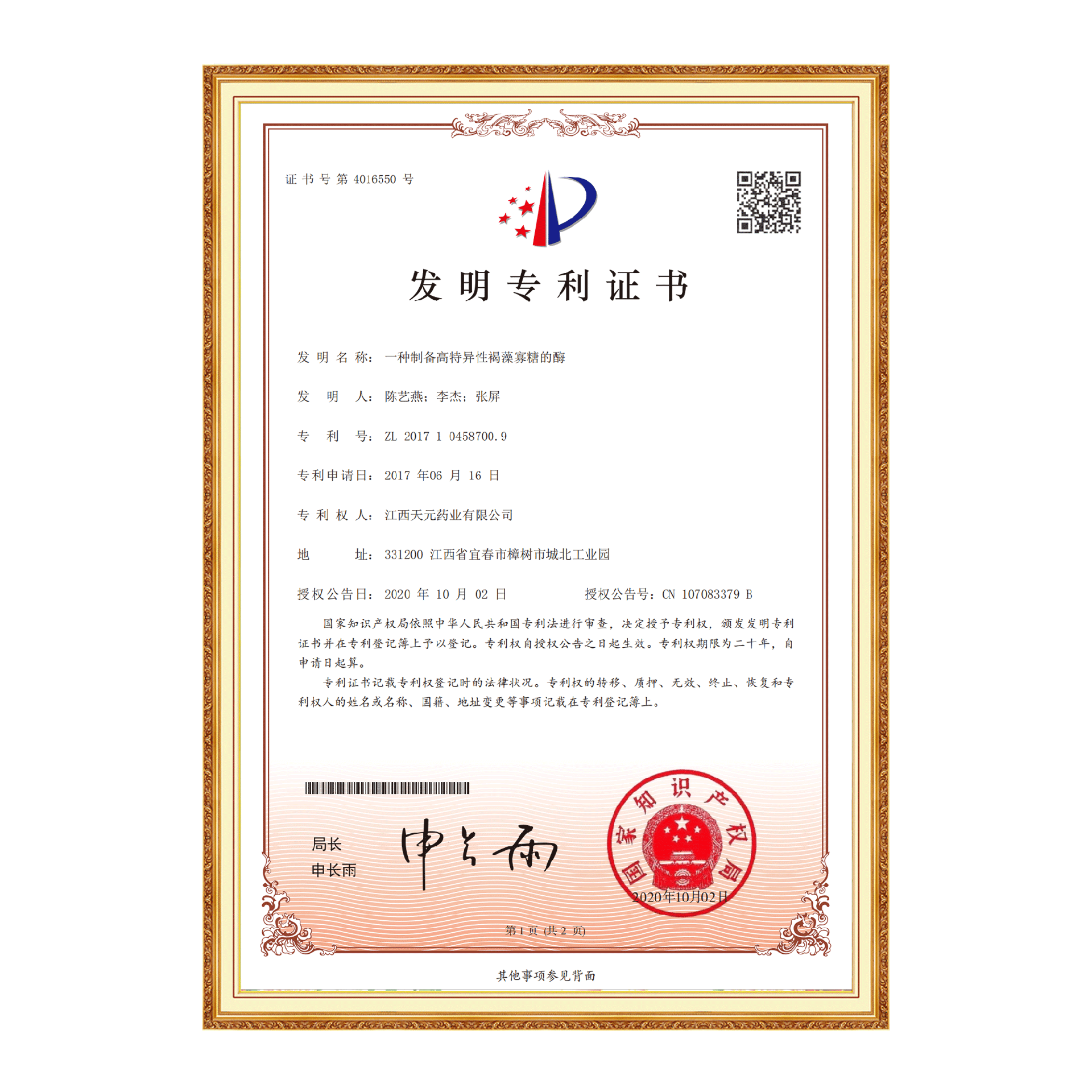发明名称:一种制备高特异性褐藻寡糖的酶